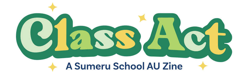 Class Act is an upcoming for-profit, SFW fanzine showcasing the Sumeru characters in a school AU setting! Our goal is to present their daily lives as students across different schooling periods, such as high school, college and grad school. We hope to explore different settings and scenarios through fics, art and comic spreads.